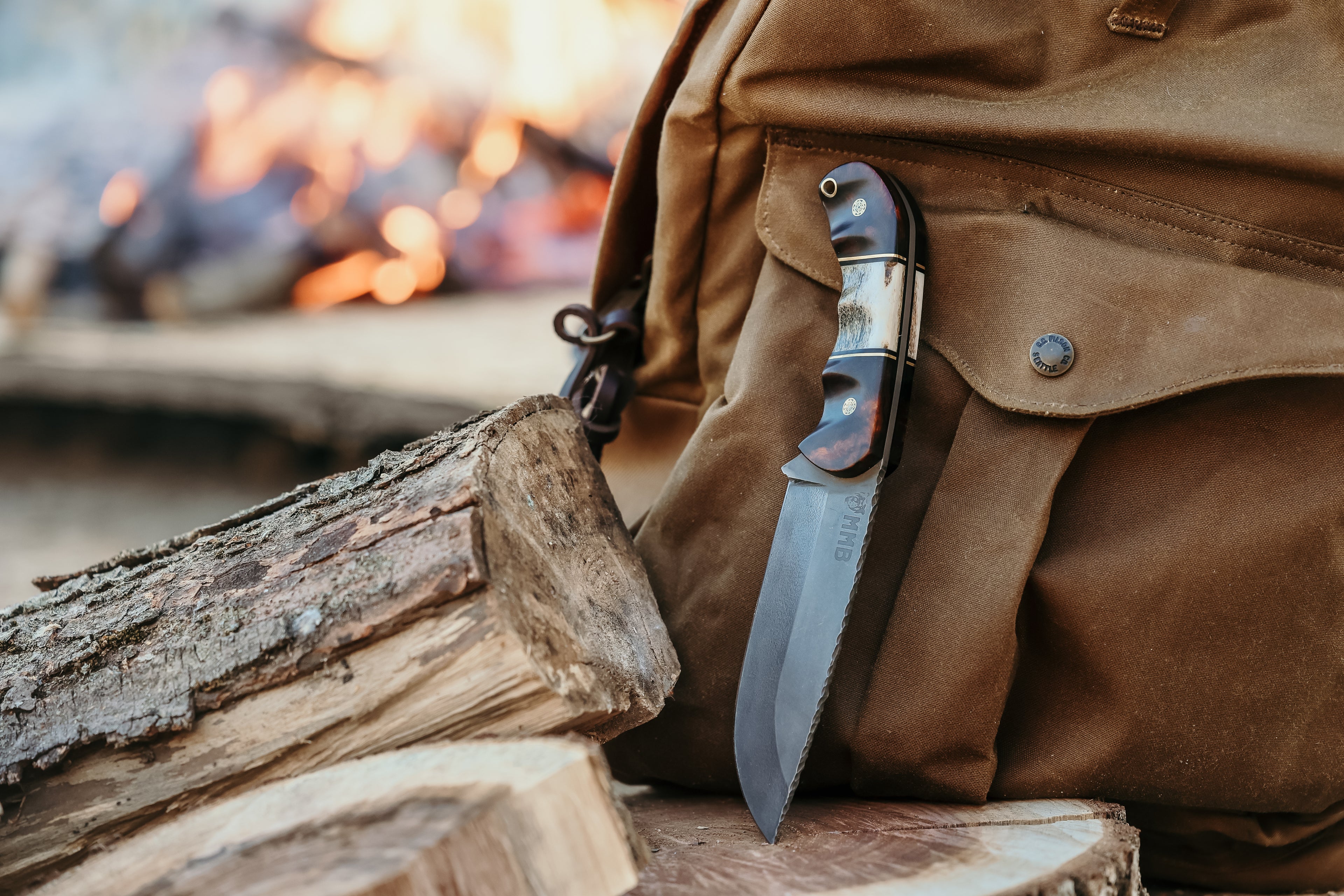 Series 1 CUSTOM FULL - Alaskan Moose, Black G10, Ivory G10, Brass, Black Truestone Split with gold webbing, Red Wood, Brass Mosaic Pins, Contoured grip.